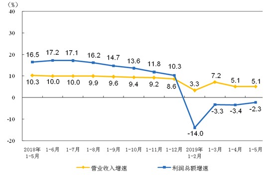 1—5月份,采礦業實現利潤總額2311.2億元,同比增長4.7%;製造業實現利潤總額19519.4億元,下降4.1%;電力、熱力、燃氣及水生產和供應業實現利潤總額1959.6億元,增長9.6%。
