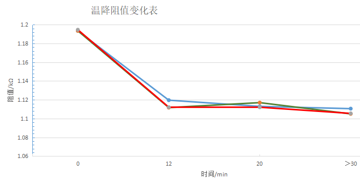 根據現場工況、溫度範圍,測量精度選擇不同的測量方法。這些接觸式的測溫方法都需要把溫度傳感器插入到被測介質中去測量溫度。這zhe種zhong接jie觸chu式shi測ce量liang常chang常chang可ke以yi得de到dao較jiao高gao的de測ce量liang精jing度du,但dan它ta也ye帶dai來lai一yi些xie明ming顯xian缺que點dian,那na就jiu是shi響xiang應ying速su度du較jiao慢man,且qie傳chuan感gan器qi易yi受shou被bei測ce介jie質zhi的de腐fu蝕shi。下xia麵mian兩liang圖tu展zhan示shi了le熱re電dian阻zu(PT1000)測溫時,溫升與溫降時熱電阻阻值的變化曲線。從曲線上很明顯的就能看出,熱電阻測溫時有明顯的滯後性,特別是在溫度下降時有超過10分鍾以上的滯後。