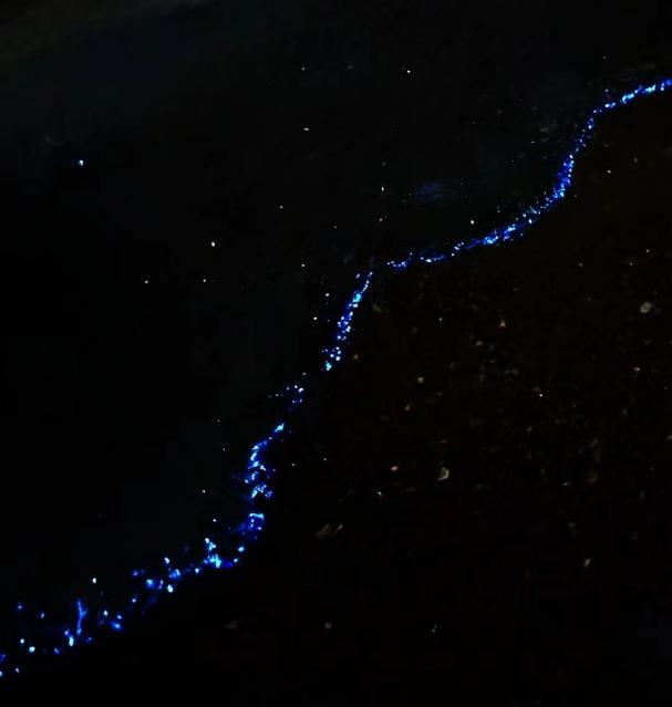 夜ye晚wan的de海hai岸an,是shi一yi幅fu寧ning靜jing而er神shen秘mi的de畫hua卷juan。當dang夕xi陽yang的de餘yu暉hui逐zhu漸jian消xiao失shi在zai天tian際ji,夜ye幕mu降jiang臨lin,海hai岸an便bian展zhan現xian出chu它ta獨du特te的de魅mei力li。漫man步bu在zai夜ye晚wan的de海hai灘tan上shang,感gan受shou著zhe海hai風feng輕qing拂fu麵mian頰jia,聽ting著zhe海hai浪lang的de聲sheng音yin,讓rang人ren不bu禁jin陶tao醉zui在zai這zhe份fen寧ning靜jing與yu浪lang漫man之zhi中zhong。那na閃shan爍shuo的de藍lan色se熒ying光guang在zai黑hei暗an中zhong尤you為wei顯xian眼yan,仿fang佛fo是shi夜ye空kong中zhong最zui溫wen柔rou的de星xing星xing,照zhao亮liang了le寂ji靜jing的de夜ye晚wan,這就是隻能在夜晚體會到的浪漫——藍眼淚。