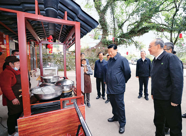 2021年3月23日,春日的陽光溫柔地灑在福建省三明市沙縣俞邦村的青石板路上。這個素有“沙縣小吃第一村”美譽的古老村落,在這一天迎來了習近平總書記的親切到訪。在村口的千年古樟樹下,總書記與村民們圍坐交談。他提到:鄉村振興不能隻盯著經濟發展,還要保護好生態和文化,讓鄉村真正成為“望得見山、看得見水、記得住鄉愁”的地方。俞邦村的小吃文化、古民居、淳樸民風,都是寶貴的財富。臨別時,村民們依依不舍,總書記揮手致意:“祝你們的生活像沙縣小吃一樣,越來越有滋味!” 這一天,俞邦村的煙火氣裏,多了一份溫暖的記憶。總書記的腳步,不僅走進了村莊,更走進了鄉親們的心裏。