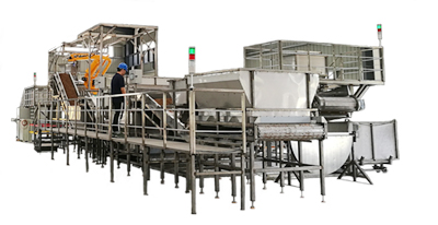 酒業釀造智能化生產線包含智能加糧加糠、智能望氣上甑、蒸餾、冷凝出酒、打量水、燜糧、智能攤晾加曲等完整工藝產線。該產品集成了智能加糧加糠控製、上甑定量控製,機器人智能上甑、蒸餾出酒控製、打量水控製、酒糟智能攤晾溫度控製以及生產狀態監控等智能化控製係統和軟件。