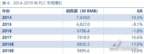 圖3:2014-2019年PLC市場增長(Unit:MRMB)
