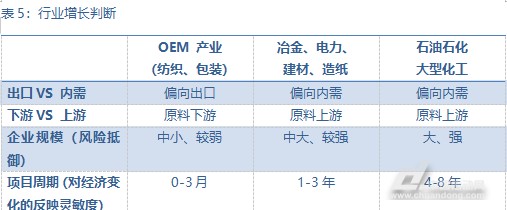 平穩增長:以食品飲料、包裝、電子設備製造為代表的OEM行業。