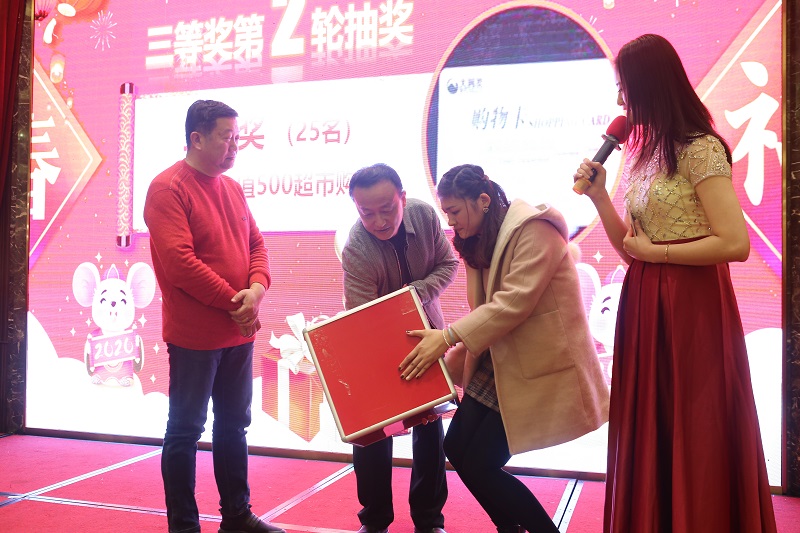 隨(sui)著(zhe)一(yi)等(deng)獎(jiang)獲(huo)獎(jiang)者(zhe)的(de)產(chan)生(sheng)和(he)頒(ban)獎(jiang)結(jie)束(shu),年(nian)會(hui)的(de)現(xian)場(chang)氣(qi)氛(fen)達(da)到(dao)了(le)高(gao)潮(chao),年(nian)會(hui)在(zai)愉(yu)快(kuai)而(er)溫(wen)暖(nuan)的(de)氣(qi)氛(fen)中(zhong)圓(yuan)滿(man)結(jie)束(shu)。台(tai)曆(li)翻(fan)開(kai)新(xin)的(de)一(yi)頁(ye),充(chong)滿(man)希(xi)望(wang)的(de)2020年nian信xin步bu向xiang我wo們men走zou來lai,在zai新xin的de一yi年nian裏li,光guang榮rong與yu夢meng想xiang同tong在zai,挑tiao戰zhan與yu機ji遇yu並bing存cun,站zhan在zai新xin的de起qi點dian上shang,讓rang我wo們men團tuan結jie起qi來lai,攜xie手shou並bing肩jian,向xiang著zhe更geng加jia高gao遠yuan的de目mu標biao奮fen進jin,努nu力li續xu寫xie全quan新xin的de燦can爛lan與yu輝hui煌huang!