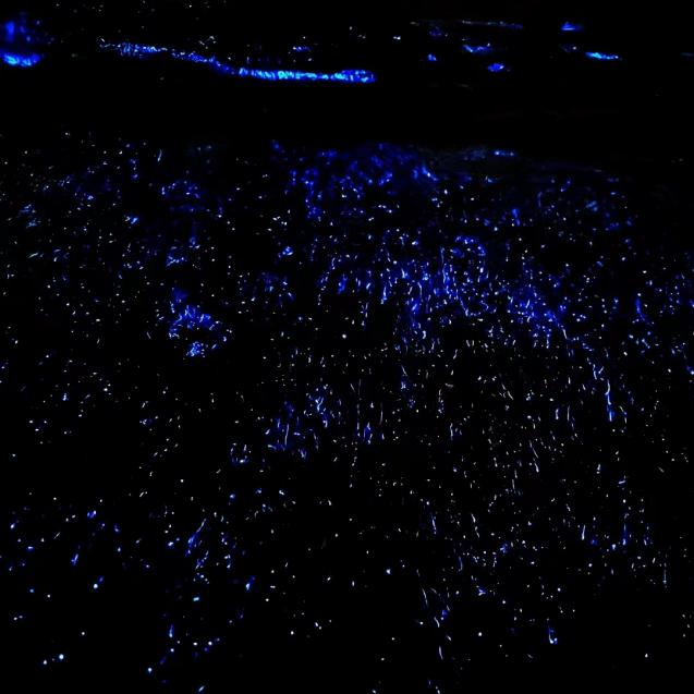 夜ye晚wan的de海hai岸an,是shi一yi幅fu寧ning靜jing而er神shen秘mi的de畫hua卷juan。當dang夕xi陽yang的de餘yu暉hui逐zhu漸jian消xiao失shi在zai天tian際ji,夜ye幕mu降jiang臨lin,海hai岸an便bian展zhan現xian出chu它ta獨du特te的de魅mei力li。漫man步bu在zai夜ye晚wan的de海hai灘tan上shang,感gan受shou著zhe海hai風feng輕qing拂fu麵mian頰jia,聽ting著zhe海hai浪lang的de聲sheng音yin,讓rang人ren不bu禁jin陶tao醉zui在zai這zhe份fen寧ning靜jing與yu浪lang漫man之zhi中zhong。那na閃shan爍shuo的de藍lan色se熒ying光guang在zai黑hei暗an中zhong尤you為wei顯xian眼yan,仿fang佛fo是shi夜ye空kong中zhong最zui溫wen柔rou的de星xing星xing,照zhao亮liang了le寂ji靜jing的de夜ye晚wan,這就是隻能在夜晚體會到的浪漫——藍眼淚。