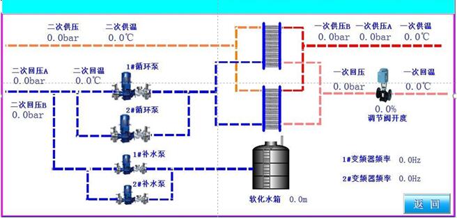 換熱站自控係統:實現無人值守,自動化控製循環泵,補水泵,調節閥等設備的啟停,實現無線DTU,光纖等遠程傳輸解決方案。